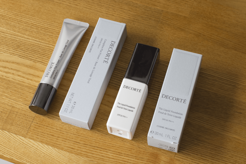 コスメデコルテ「ザ リキッドファンデーション」 と下地「コンプリート フラット プライマー」 おすすめです。